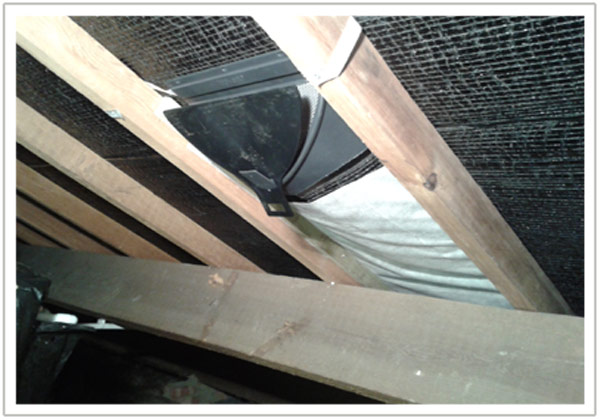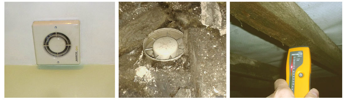 This bathroom fan vents directly into the loft and has caused the roof timbers to become damp.