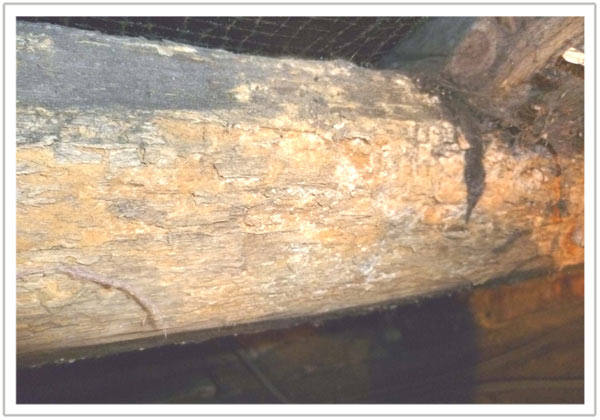 Prolonged dampness has caused these timbers to be weakened by wet rot